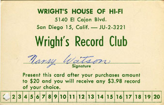 The 1959 Horace Mann Graduate came up a little short on her Wright's House of Hi-Fi card